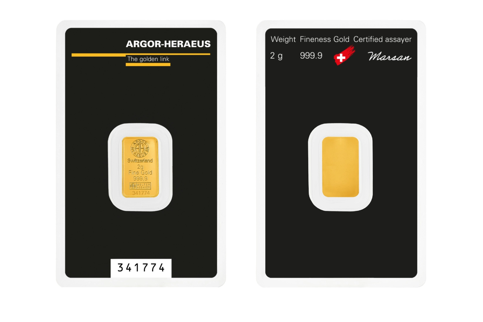 Our minted bars are the result of cutting-edge Swiss technology, refined craftsmanship and strict quality control. Each bar is sealed together with its assay card, a credit card–sized certificate of authenticity, in a transparent blister pack that ensures protection.