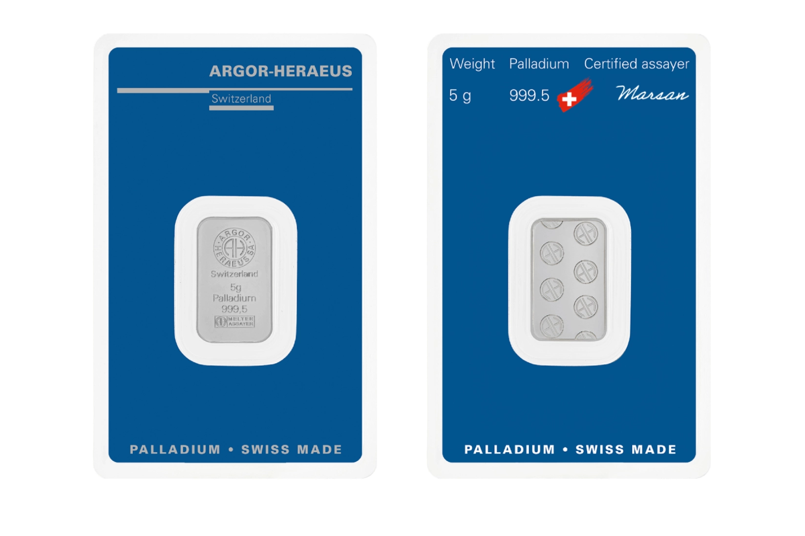 Our minted bars are the result of cutting-edge Swiss technology, refined craftsmanship and strict quality control. Each bar is sealed together with its assay card, a credit card sized certificate of authenticity, in a transparent blister pack that ensures protection.