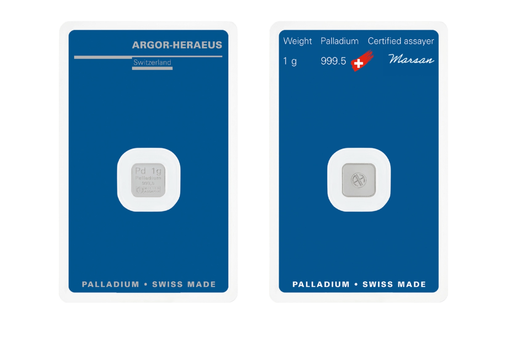 Our minted products are a fusion of advanced technology, artistic craftsmanship, and meticulous attention to detail. Each minted bar is elegantly packed alongside a credit-cardsized certificate in a transparent blister pack. All of our minted Palladium bars are crafted from 999.5 Palladium and certified by our Sworn Assayer.