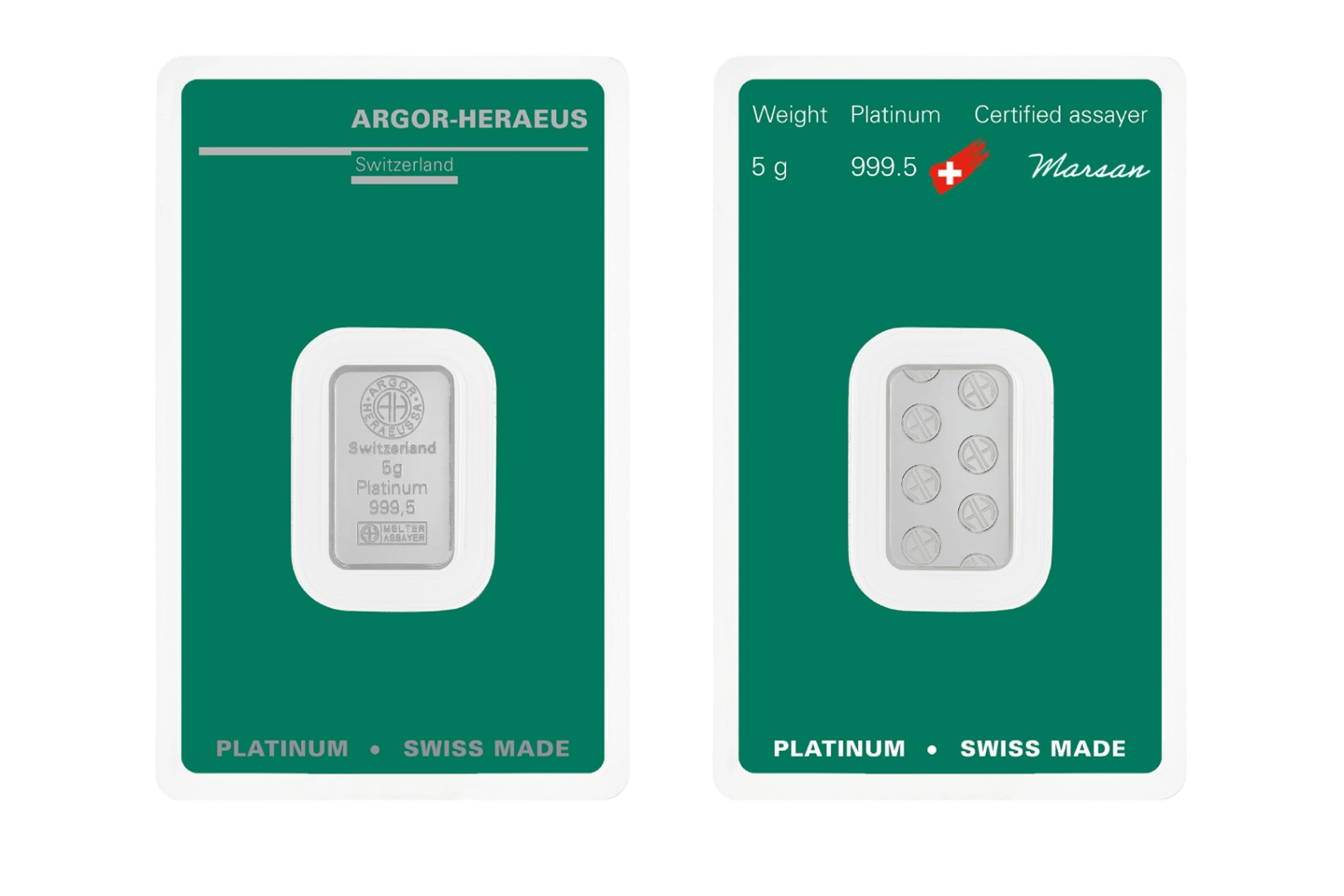 Our minted bars are the result of cutting-edge Swiss technology, refined craftsmanship and strict quality control. Each bar is sealed together with its assay card, a credit card sized certificate of authenticity, in a transparent blister pack that ensures protection.