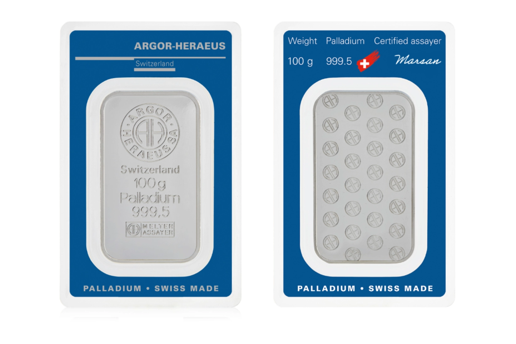 Our minted bars are the result of cutting-edge Swiss technology, refined craftsmanship and strict quality control. Each bar is sealed together with its assay card, a credit card sized certificate of authenticity, in a transparent blister pack that ensures protection.