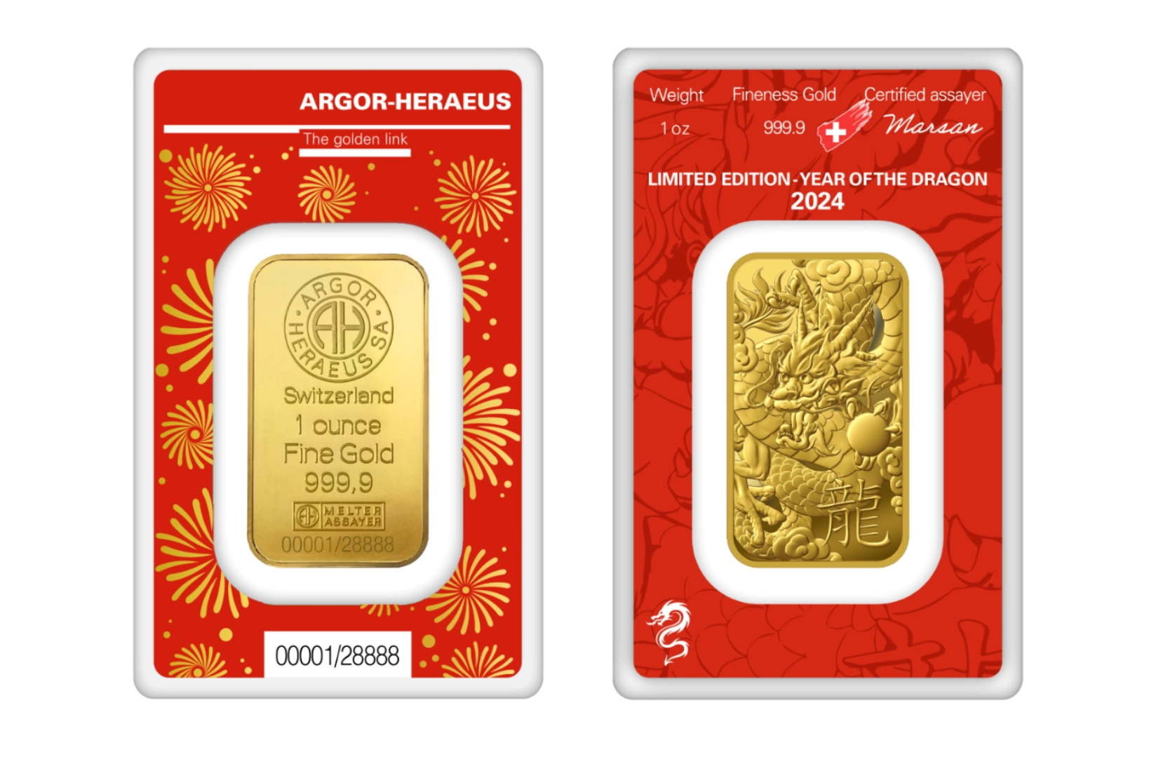 The Year of the Dragon bar celebrates the arrival of the 2024 Chinese lunar calendar and is part of Argor-Heraeus’s exclusive Lunar Zodiac Series. This limited-edition collection pays homage to ancient tradition while embodying our commitment to world-renowned quality.
