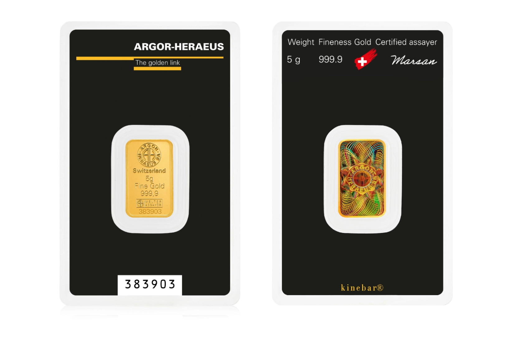 Exclusive to Argor-Heraeus, the Kinebar combines Swiss precision with advanced visual security. Each bar features a KINEGRAM, a high-tech optical element that creates a distinctive light effect, making the bar instantly recognizable and extremely difficult to counterfeit.